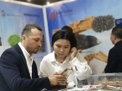 On the opening day, Mr. Luo Zhanhui, Consul General of the Chinese Consulate General in St. Petersburg, and Mr. Wang Deyang, Deputy Director General of the Trade Development Bureau, visited the KAMY CHINA booth. They were warmly received by Chairman Duan Jianping and Foreign Trade Sales Director Sun Xifeng. Both sides held in-depth discussions on corporate development, product advantages, and China–Russia mining cooperation, and took commemorative photos, leaving an important mark on the company’s exhibition journey.